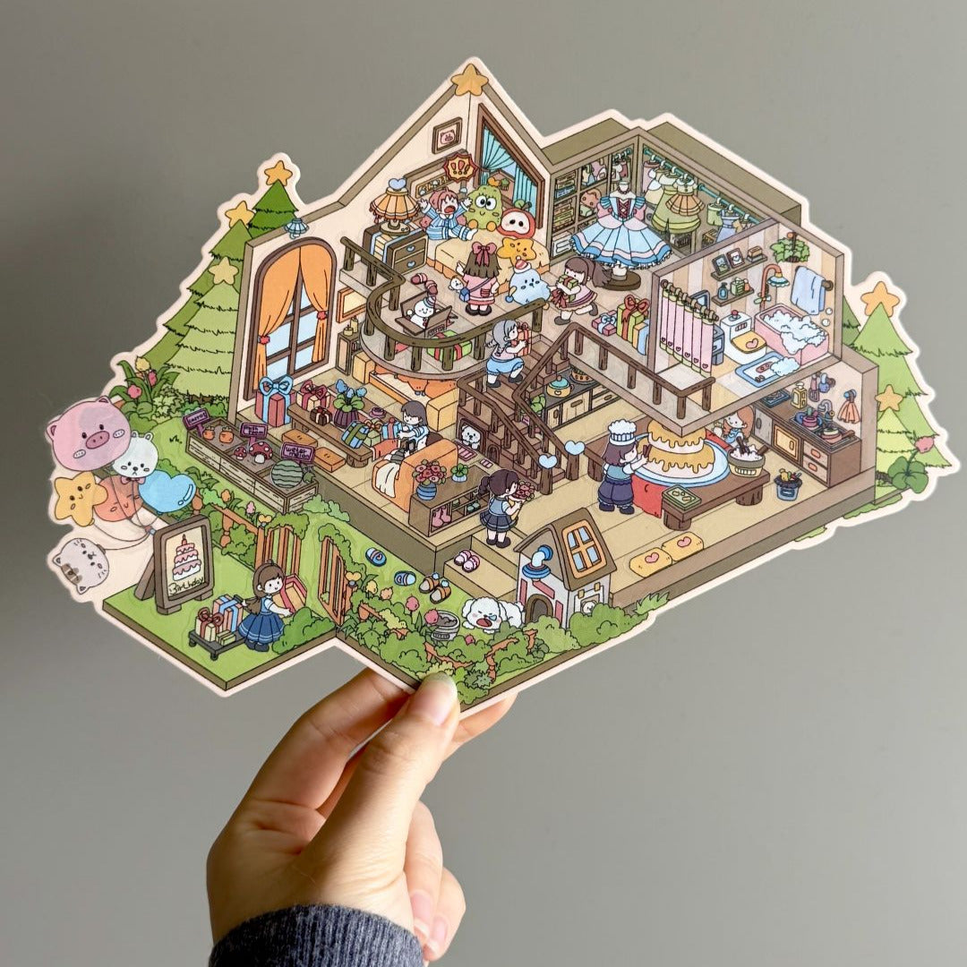 Large-Scale Christmas Eve in Grindelwald Series 3D Miniature Scene Stickers