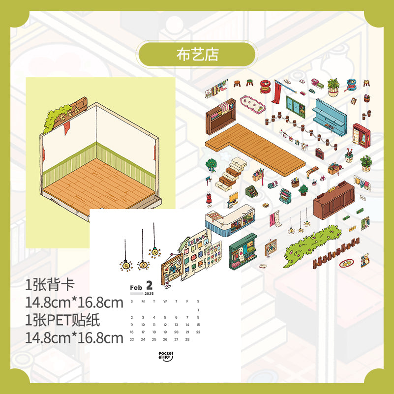 This isn’t just about placing stickers—it’s about building a world of textiles and designs. Arrange the fabric rolls, tools, and shelves as you like to create your very own unique fabric store. Whether you dream of a bustling retail shop or a quiet studio, this set offers endless creative potential.